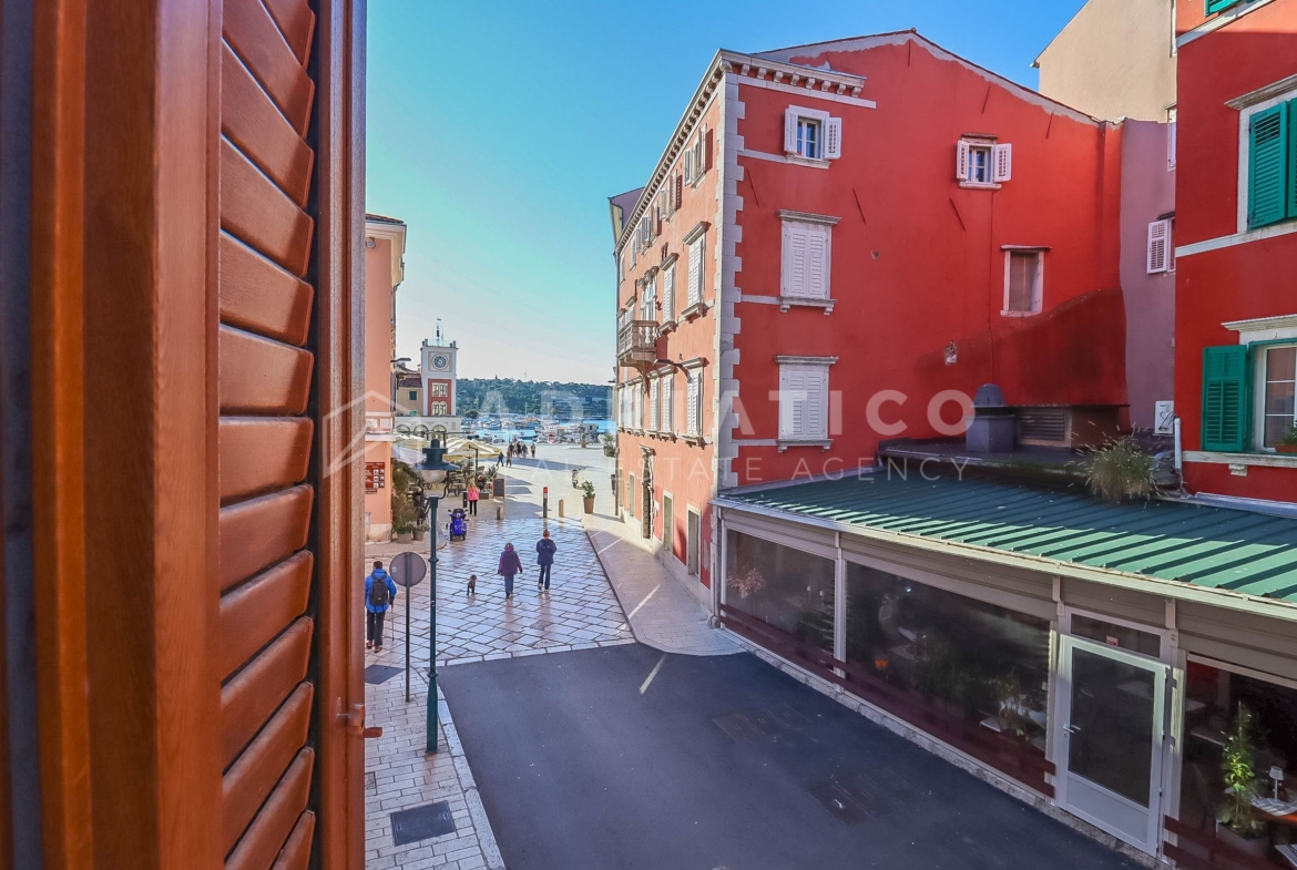 An apartment of 50 m² is for sale, located in the heart of Rovinj’s old town. The apartment consists of two rooms, a kitchen with dining area, and a bathroom.