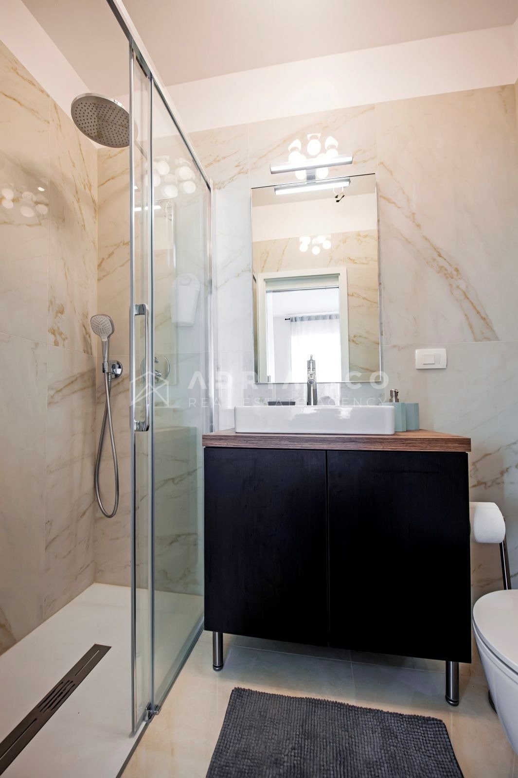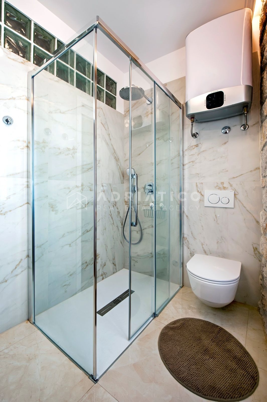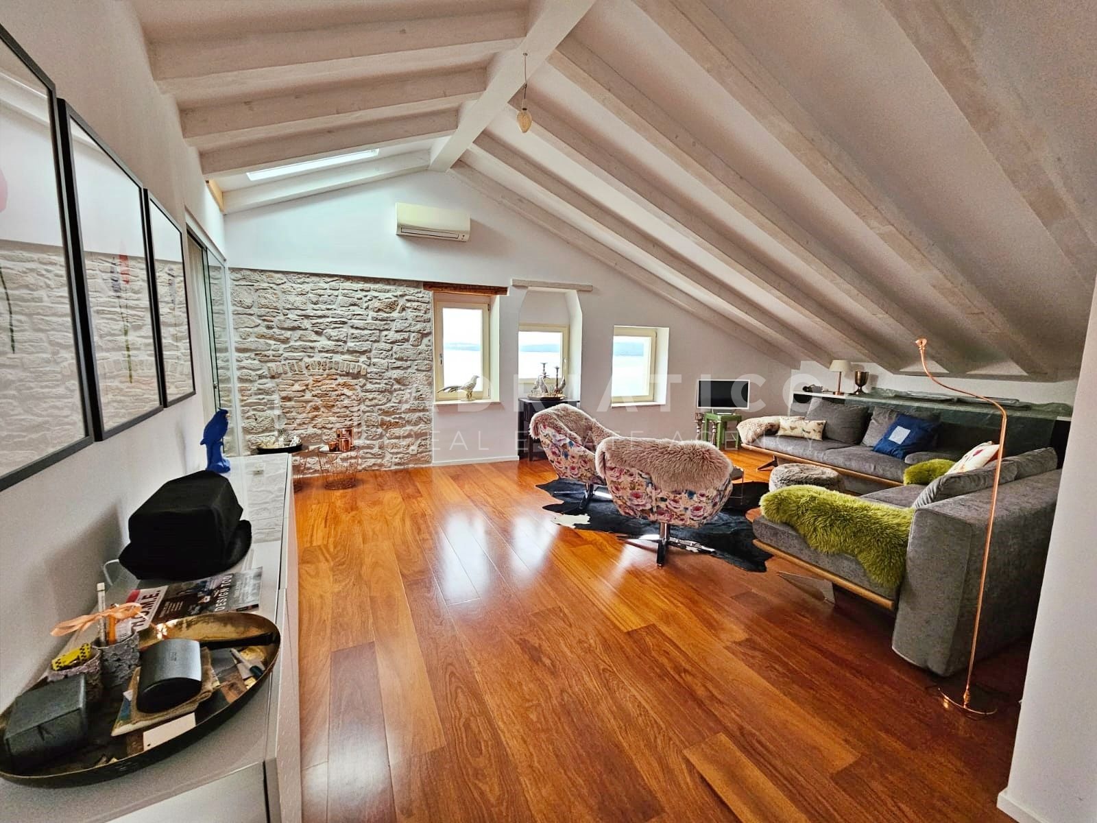 A tidy staircase leads to the third apartment, which is a split level apartment, with an area of approx. 100m2, and consists of a kitchen and dining room, spacious living room with an enchanting sea views, a bedroom and 2 bathrooms.