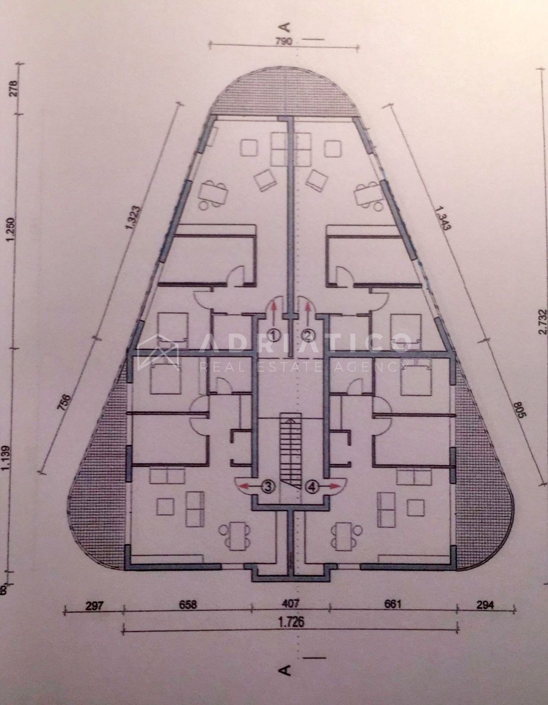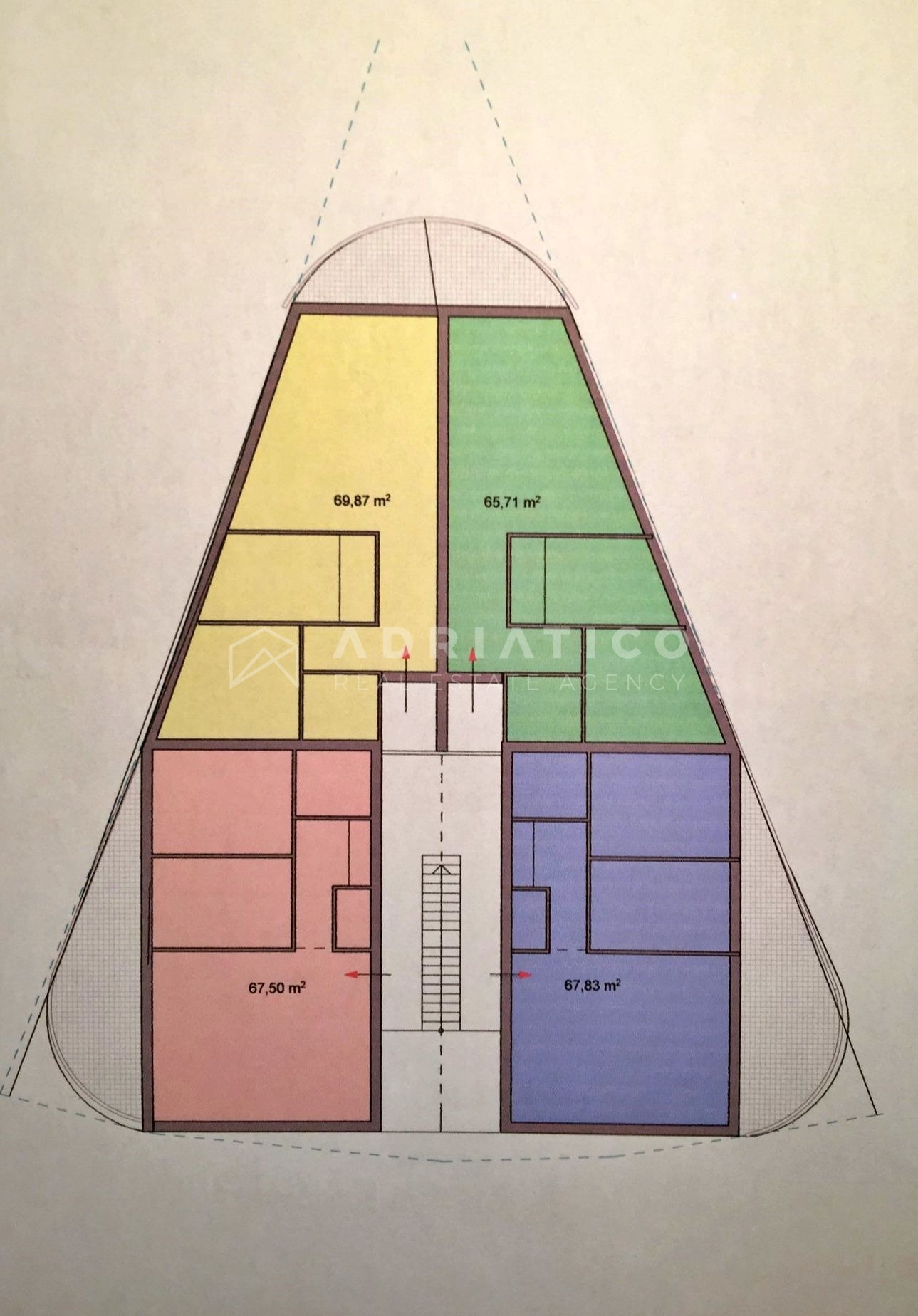 The land is located next to the main road and has a project for a residential office building consisting of four residential units and one office space.