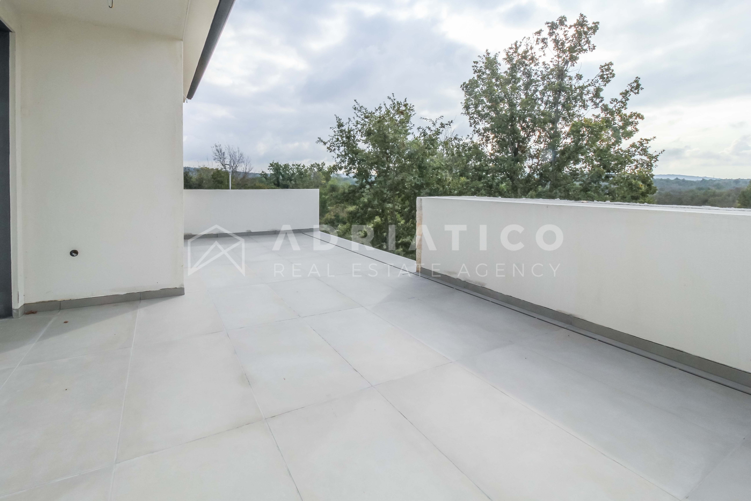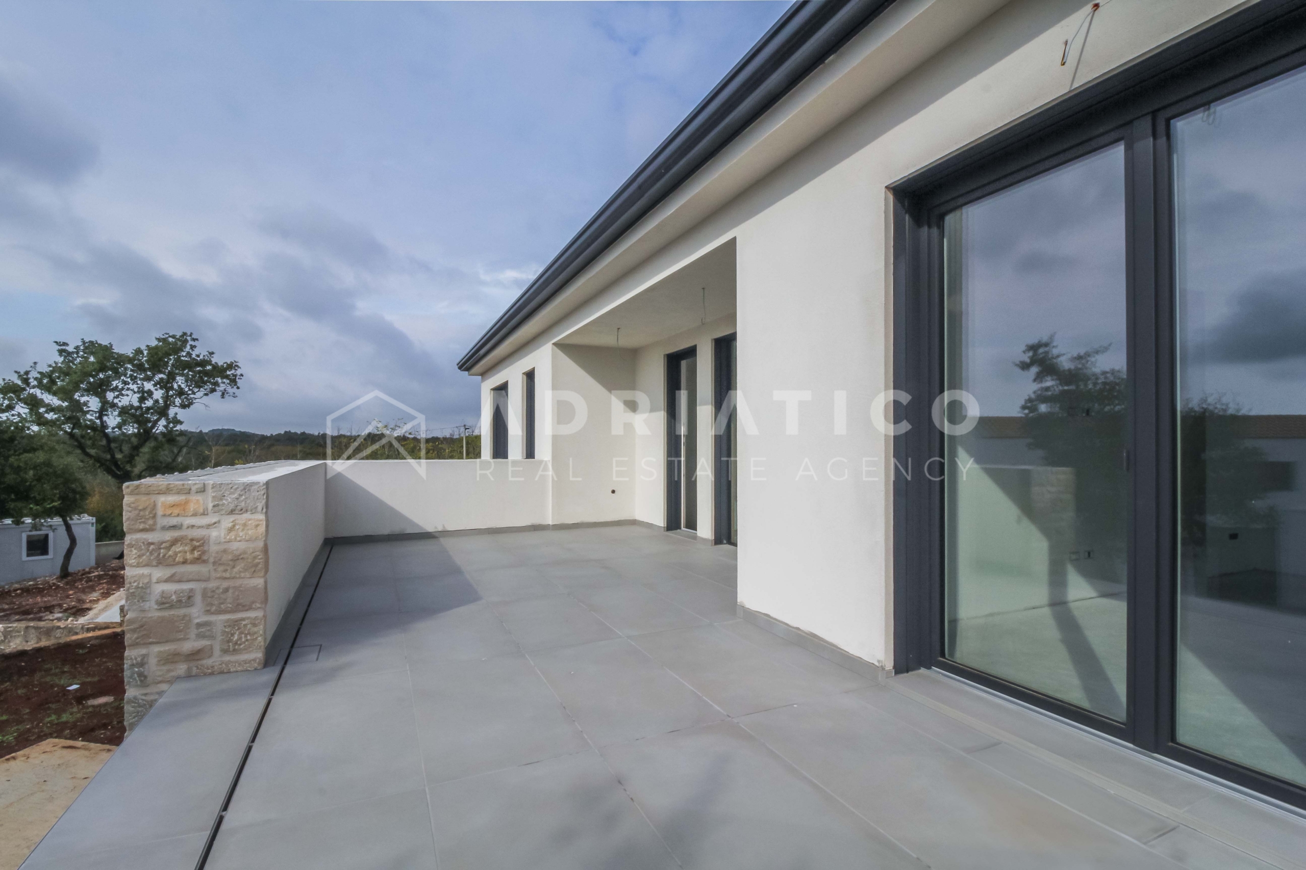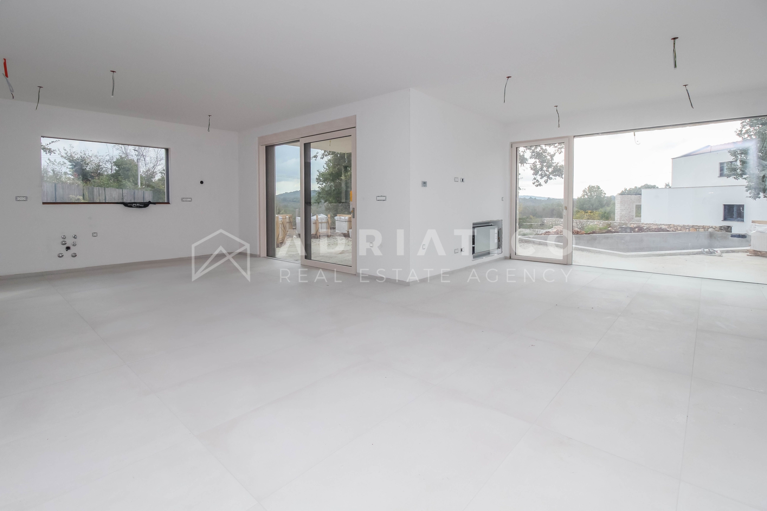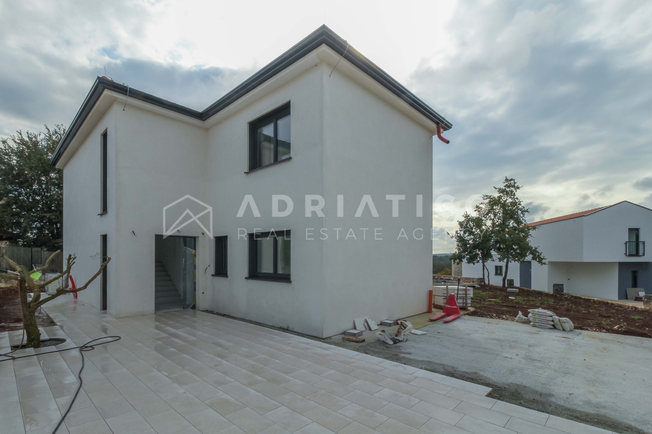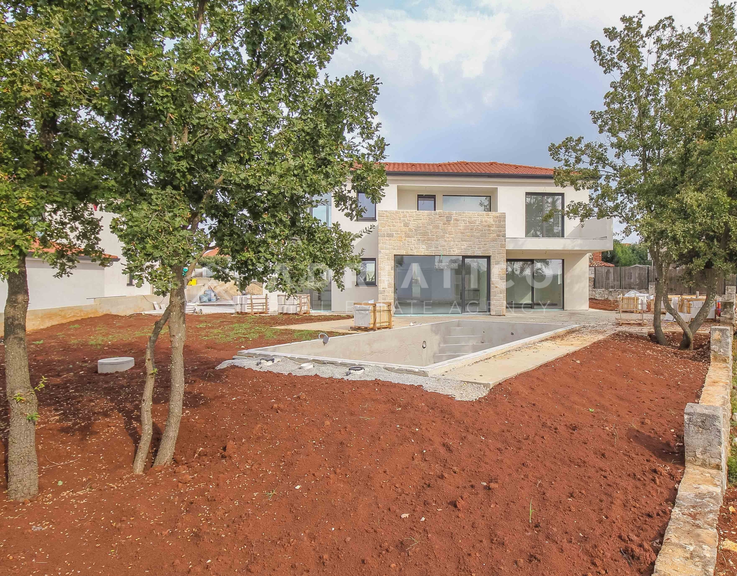 A modern house for sale in a quiet village, 11 km from the sea and 16 km from Poreč. This new construction combines contemporary design, luxurious details and high functionality, making it an ideal choice for a holiday or family life.